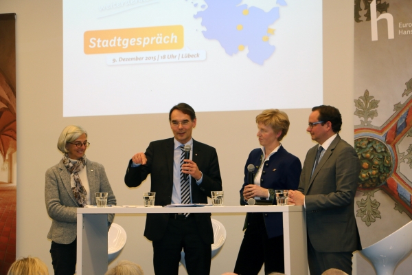 "Die Bedürfnisse von Menschen in der Stadt und auf dem Land sind keine Gegensätze. Hier wie dort wollen die Menschen sich in ihrem Lebensumfeld wohlfühlen. Die Politik muss dafür die Rahmenbedingungen entsprechend gestalten - und diese können für Stadt und Land unterschiedlich ausfallen", sagte der CDU-Landesvorsitzende Ingbert Liebing gestern (09.12.2015) vor rund 100 Teilnehmern im Europäischen Hansemuseum. In Lübeck sprach Ingbert Liebing mit dem neugewählten Essener Oberbürgermeister Thomas Kufen, der Bundestagsabgeordneten Alexandra Dinges-Dierig, Senatorin a.D. der Freien und Hansestadt Hamburg, sowie Lübecks CDU-Kreisvorsitzender Anette Röttger.