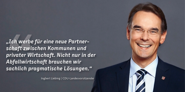 "Wir müssen raus aus den ideologischen Schützengräben der Auseinandersetzung um Rekommunalisierung oder den Grundsatz Privat vor Staat. Stattdessen brauchen wir sachlich pragmatische Lösungen", sagte der Landesvorsitzende der CDU Schleswig-Holstein Ingbert Liebing heute (08.07.2015) im Rahmen einer Veranstaltung des Bundesverbandes der Deutschen Entsorgungswirtschaft (BDE) in Ahrensburg zum geplanten neuen Wertstoffgesetz. Liebing warb für eine "neue Partnerschaft zwischen Kommunen und privater Wirtschaft" und nannte die Abfallwirtschaft als "Paradebeispiel dafür, dass Partnerschaft gelingen kann, wenn sie gewollt ist“.