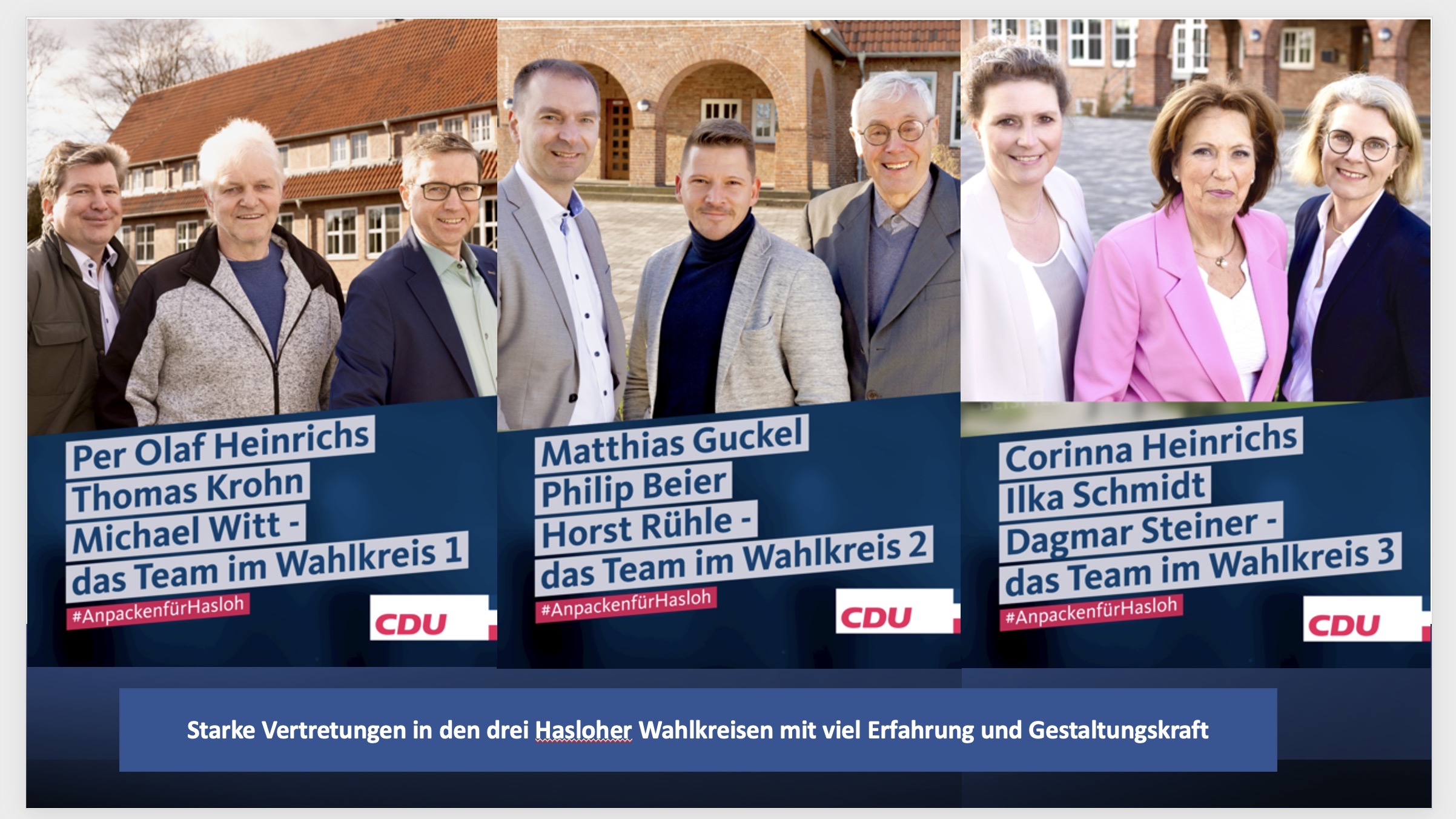 Die Teams für die 3 Hasloher Wahlkreise stehen