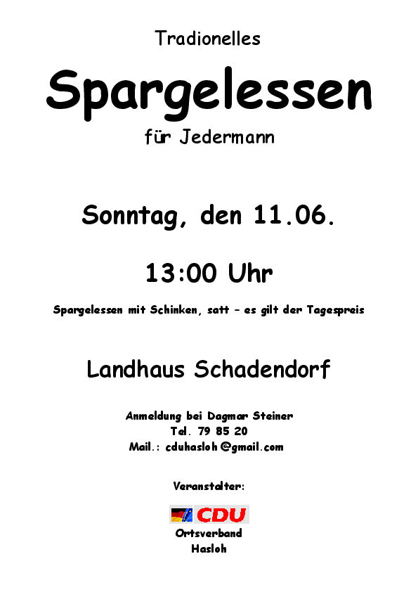 Einladung zum Spargelessen satt am 11. Juni um 13:00 Uhr