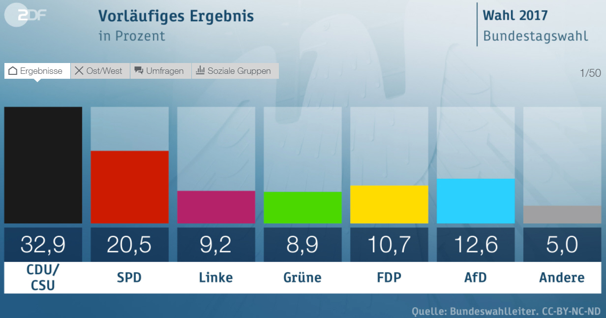Forschungsgruppe Wahlen e.V. Forschungsgruppe Wahlen e.V. Forschungsgruppe Wahlen e.V. Forschungsgruppe Wahlen e.V. 08.10.2017 Wahlergebnis der Bundestagswahl 2017 Mehr zum Thema DateiAnalysen (79 KB) Empfehlen Sie uns!Bei Facebook teilen Bei Twitter (X) teilen Bei Whatsapp teilen Diese Seite drucken Diese Seite einem Freund schicken