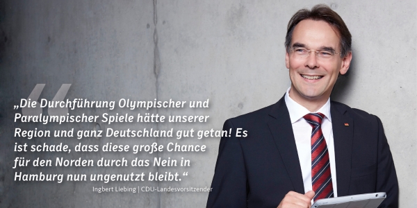 "Das Nein der Hamburgerinnen und Hamburger zur Bewerbung um die Ausrichtung der Spiele 2024 ist sehr bedauerlich. Es ist schade, dass diese große Chance für den Norden nun ungenutzt bleibt. Die Durchführung Olympischer und Paralympischer Spiele hätte unserer Region und ganz Deutschland gut getan!"